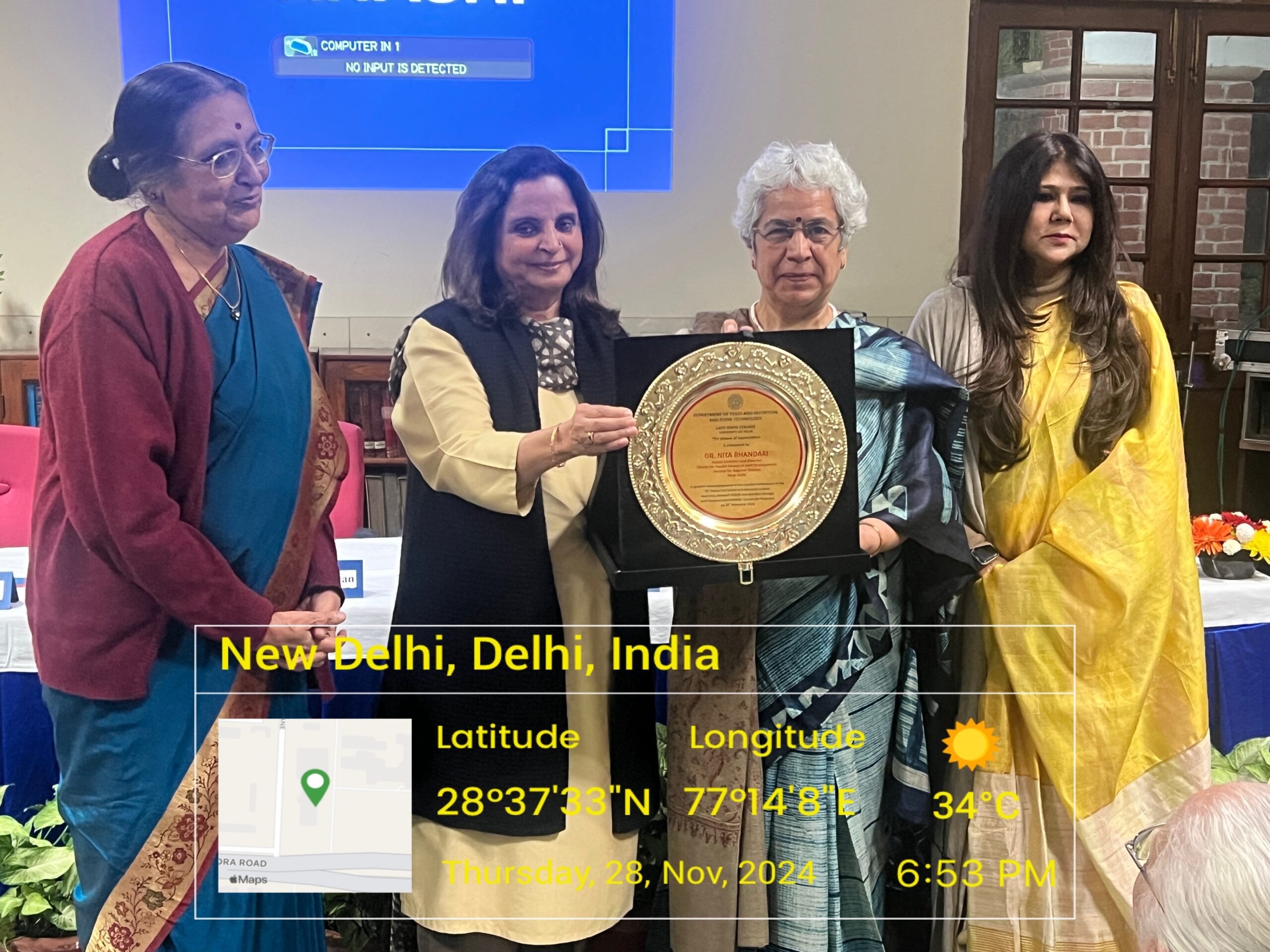 - Ramanathan Prize for Best Oral Presentation (Community Nutrition Category) – Jain, A. and Mathur, P. for Oral presentation in Free Communications session on “Risk Assessment of Sulphite Exposure through Foods among Adolescents of Delhi” at the 48th Annual National Conference of the Nutrition Society of India on the theme “Nutrition Risk Management and Communication” held on 4th and 5th November 2016 in Bengaluru.